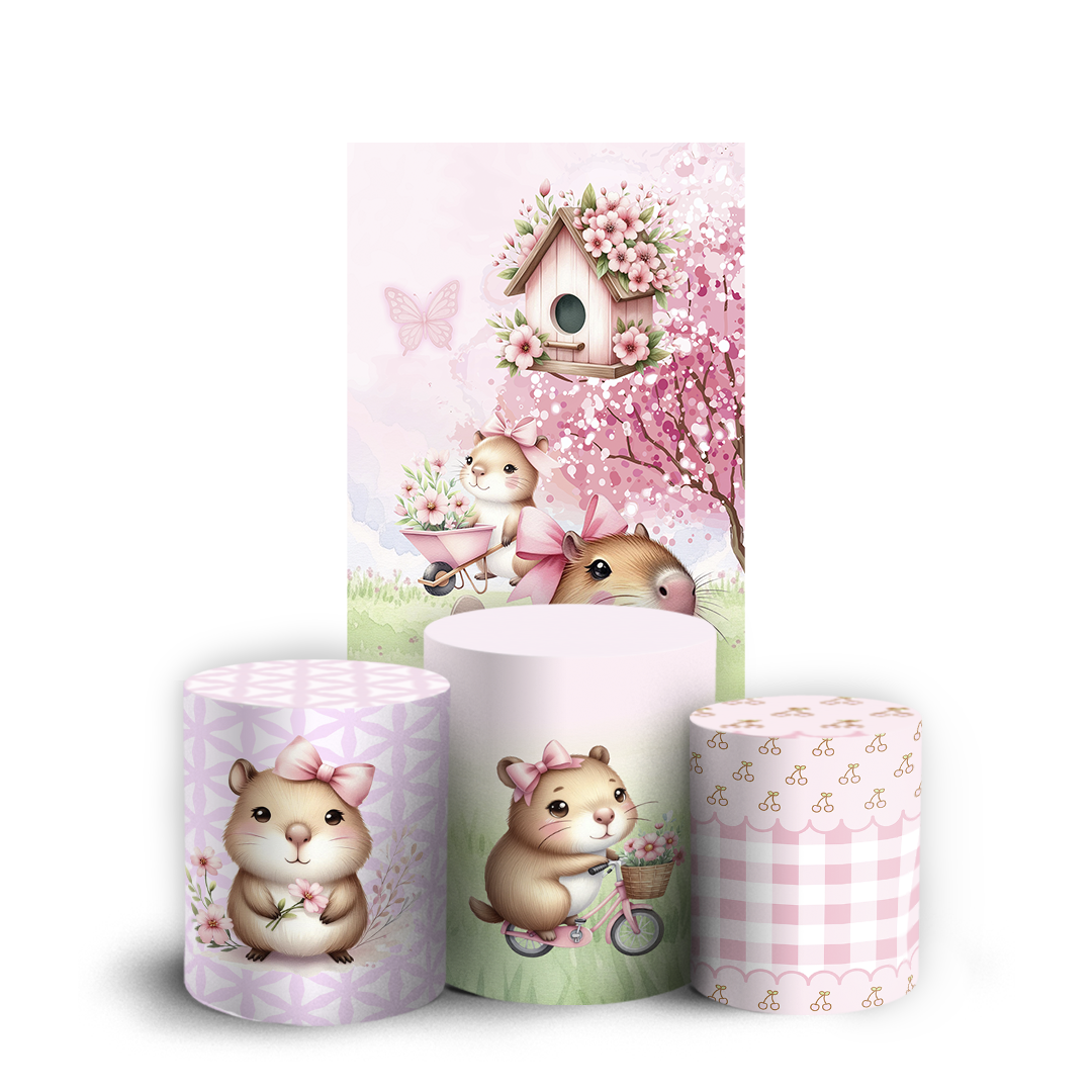 Nosso kit Faixa + Trio de Capas para Cilindros Sublimadas, possuem acabamento em overloque e é ideal para criar aquela decoração de tirar o folego!