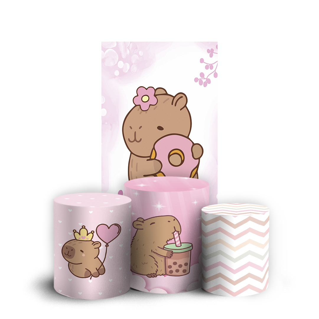 Nosso kit Faixa + Trio de Capas para Cilindros Sublimadas, possuem acabamento em overloque e é ideal para criar aquela decoração de tirar o folego!