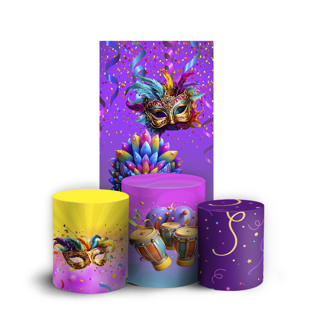 Nosso kit Faixa + Trio de Capas para Cilindros Sublimadas, possuem acabamento em overloque e é ideal para criar aquela decoração de tirar o folego!