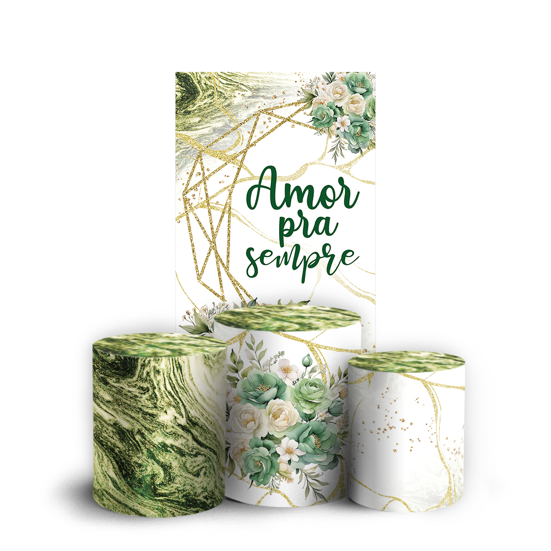 Nosso kit Faixa + Trio de Capas para Cilindros Sublimadas, possuem acabamento em overloque e é ideal para criar aquela decoração de tirar o folego!
