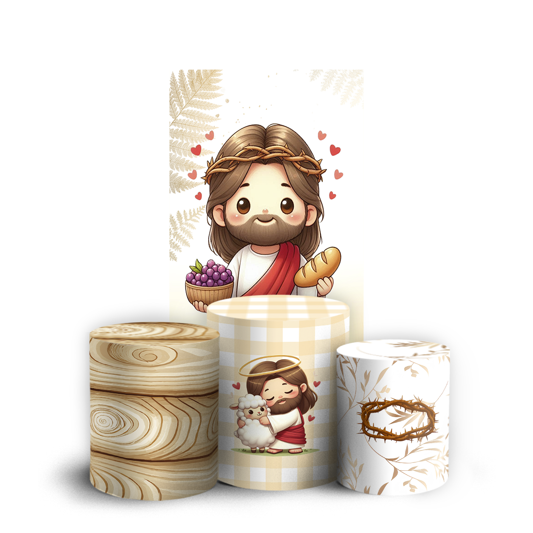 Nosso kit Faixa + Trio de Capas para Cilindros Sublimadas, possuem acabamento em overloque e é ideal para criar aquela decoração de tirar o folego!