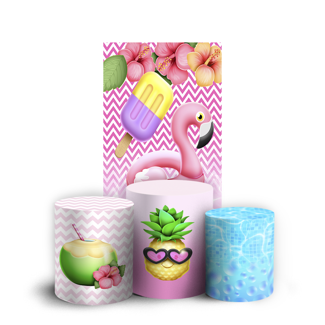 Nosso kit Faixa + Trio de Capas para Cilindros Sublimadas, possuem acabamento em overloque e é ideal para criar aquela decoração de tirar o folego!
