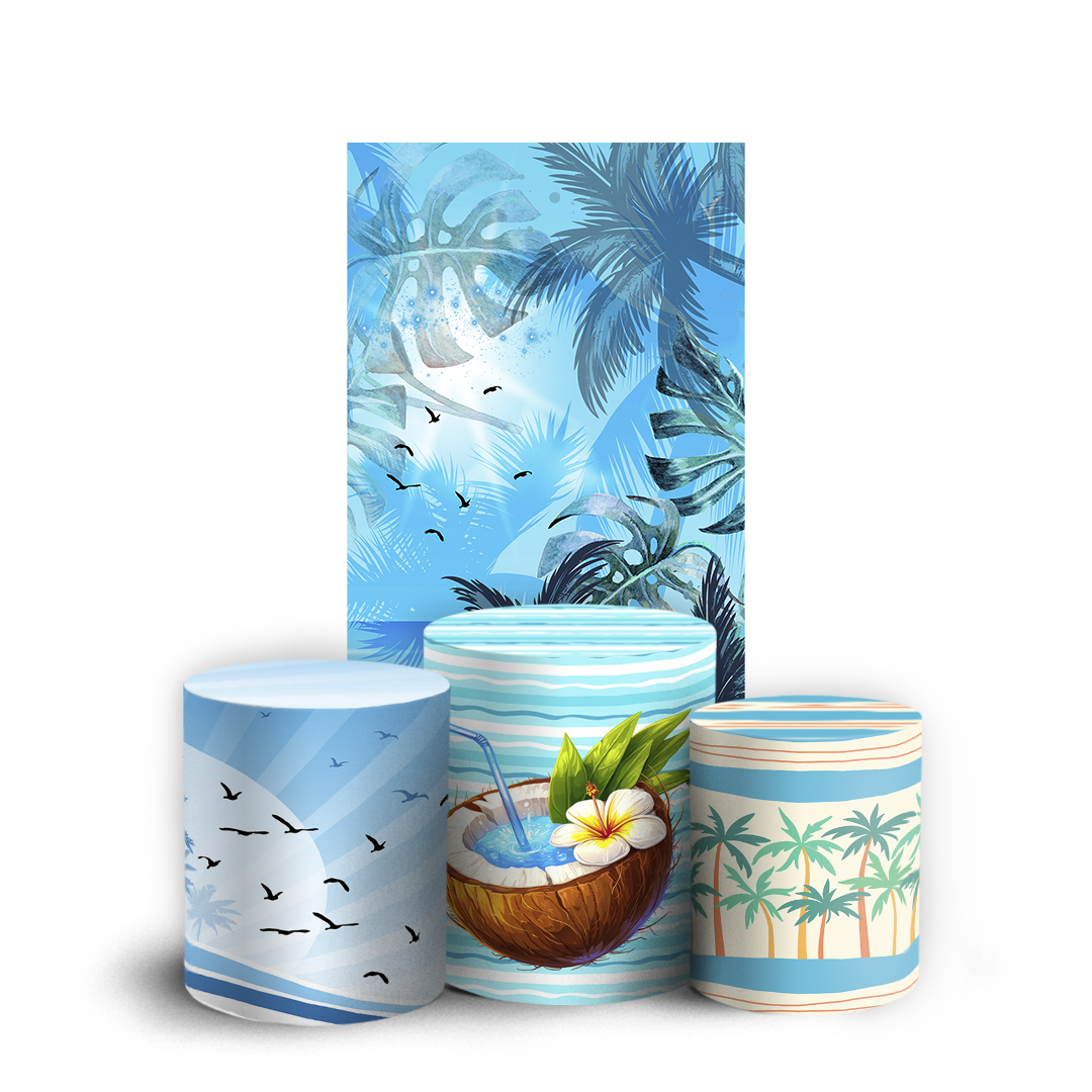 Nosso kit Faixa + Trio de Capas para Cilindros Sublimadas, possuem acabamento em overloque e é ideal para criar aquela decoração de tirar o folego!