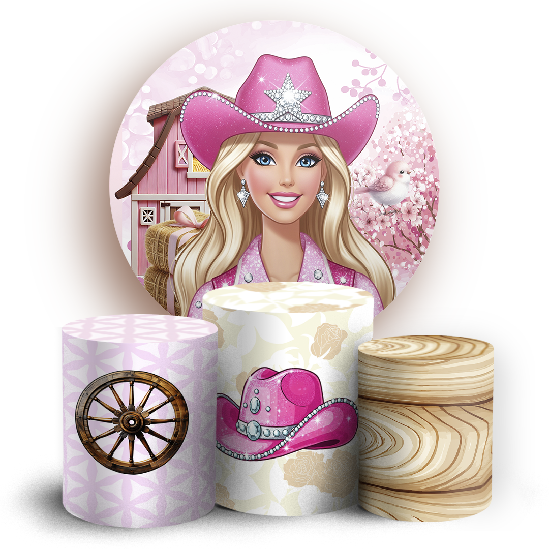 Capas Painel Redondo e Trio Cilindro Sublimado - Barbie Boiadeira