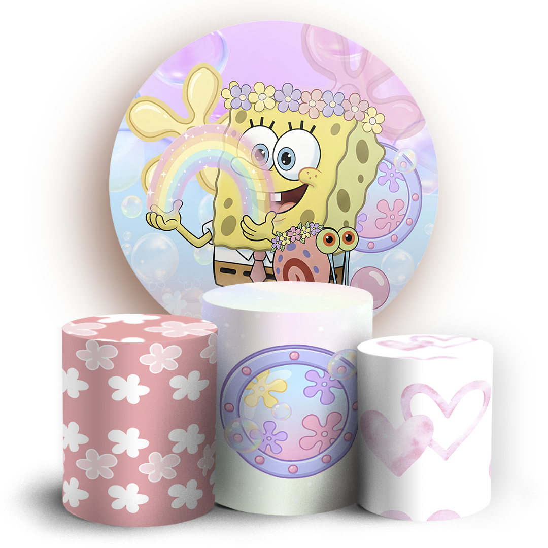 Capas Painel Redondo e Trio Cilindro Sublimado - Bob Esponja