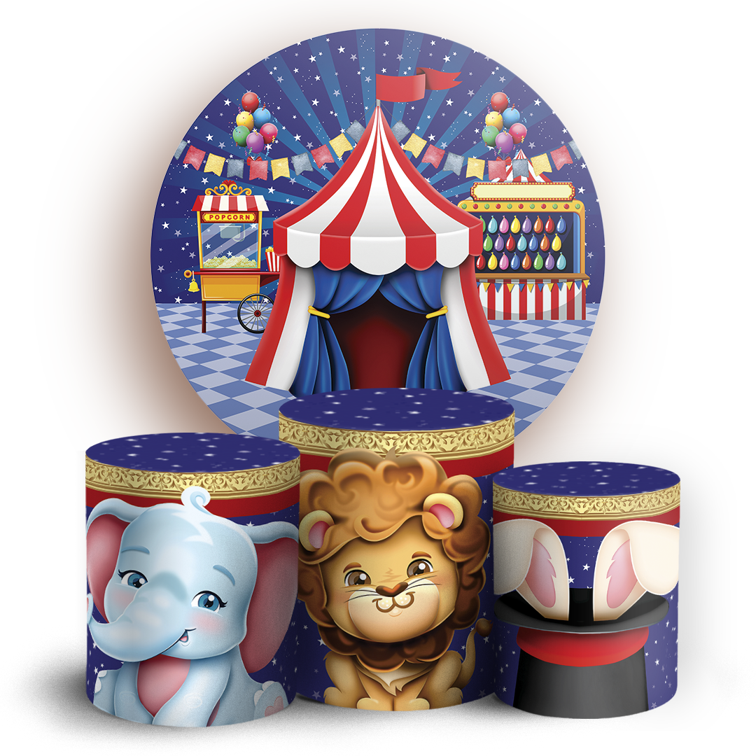 Capas Painel Redondo e Trio Cilindro Sublimado - Circo
