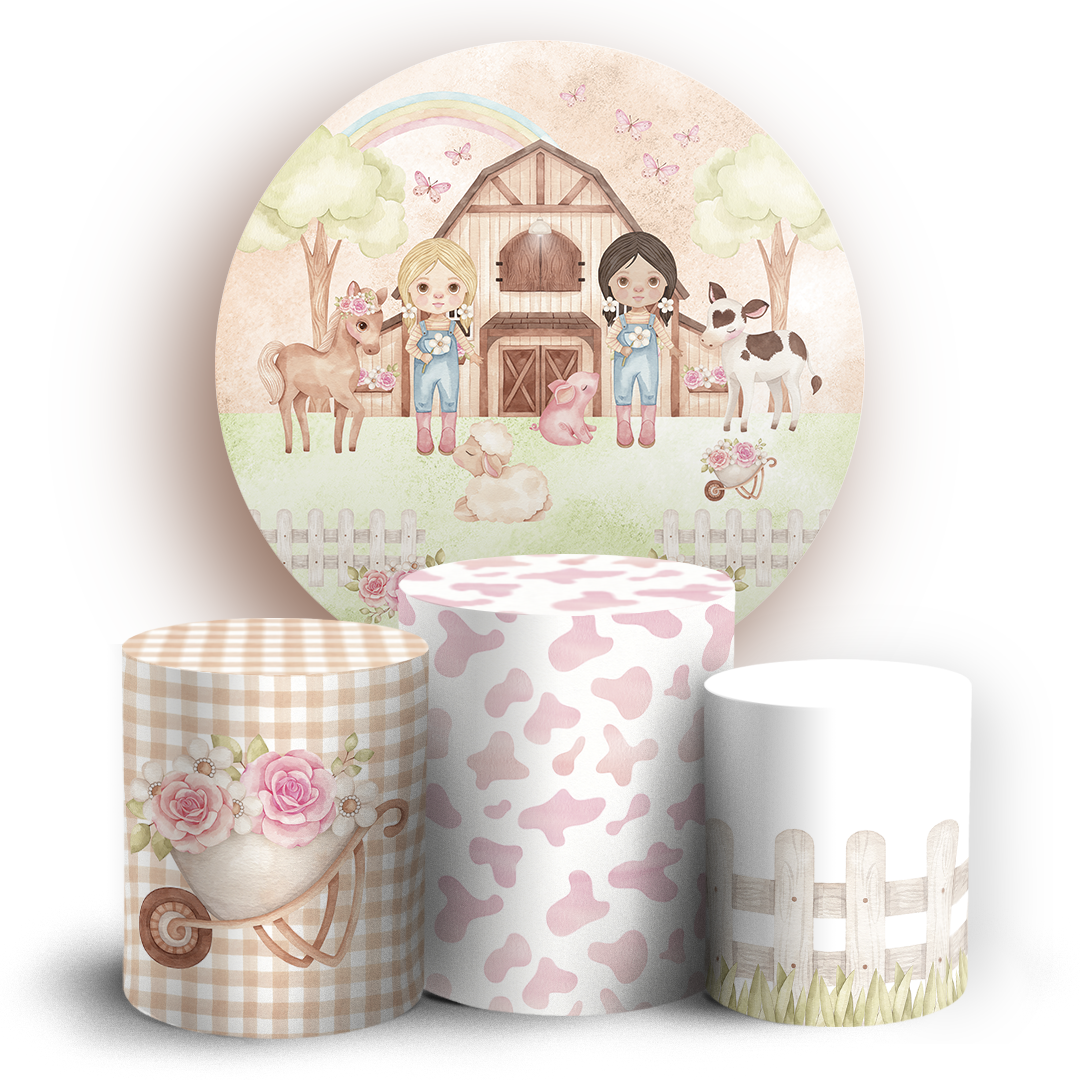 Capas Painel Redondo e Trio Cilindro Sublimado - Fazendinha