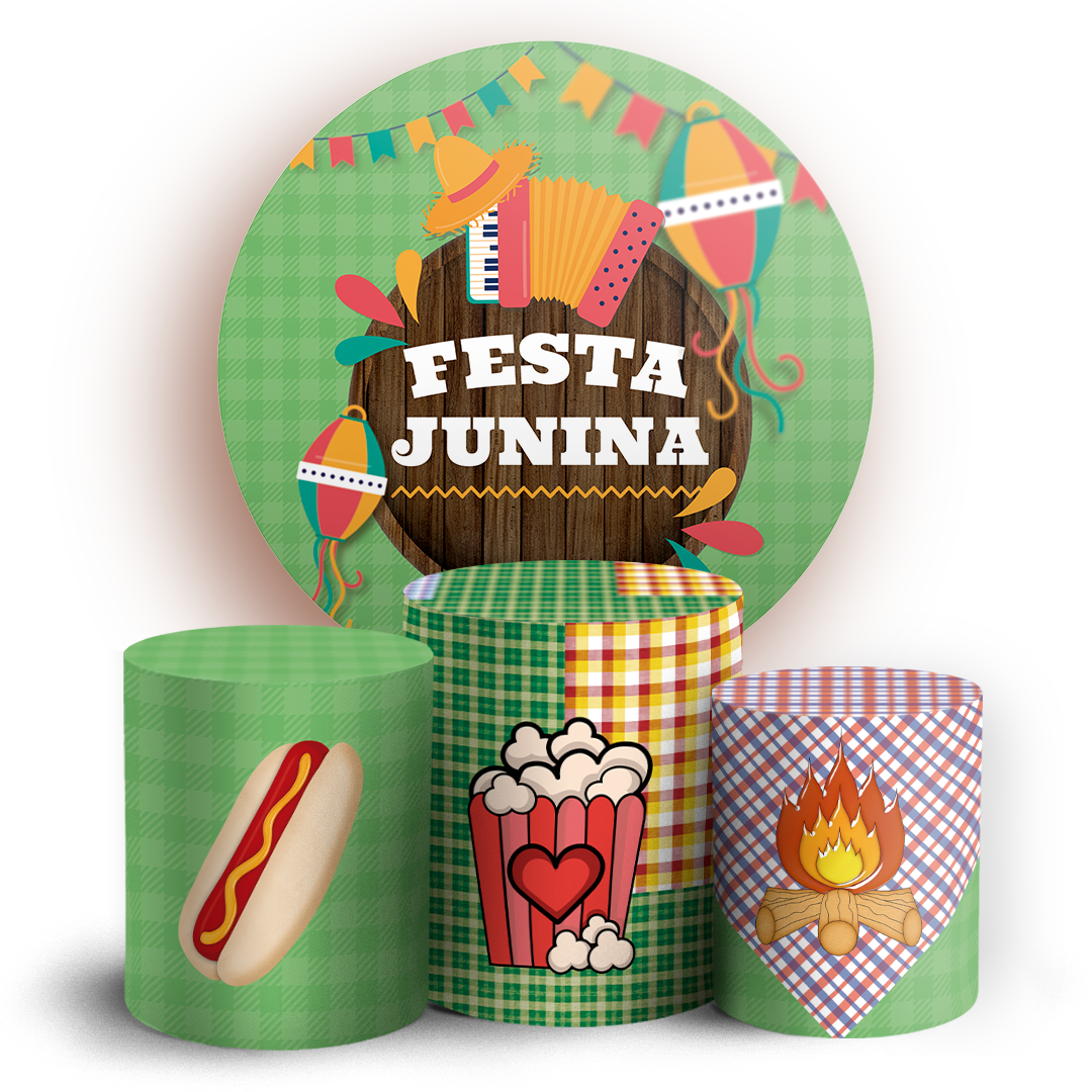 Capas Painel Redondo e Trio Cilindro Sublimado - Festa Junina