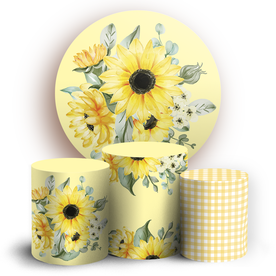 O kit Painel Redondo + Trio de capas para cilindros sublimados veste fácil, possuem acabamento overloque e elásticos nas bordas para facilitar a montagem da decoração
