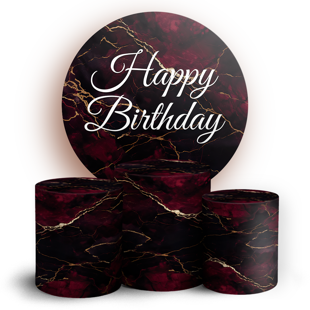 Capas Painel Redondo e Trio Cilindro Sublimado - Happy Birthday
