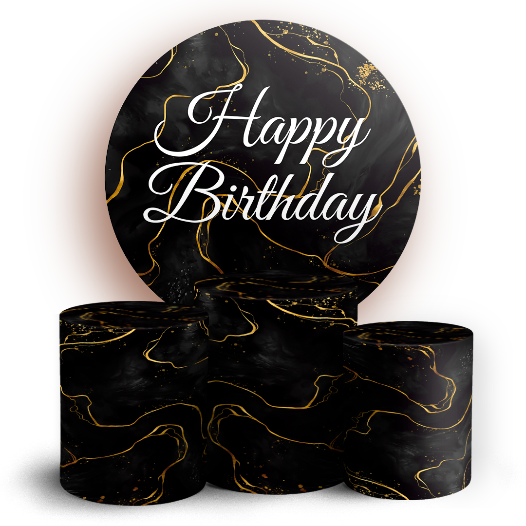 Capas Painel Redondo e Trio Cilindro Sublimado - Happy Birthday