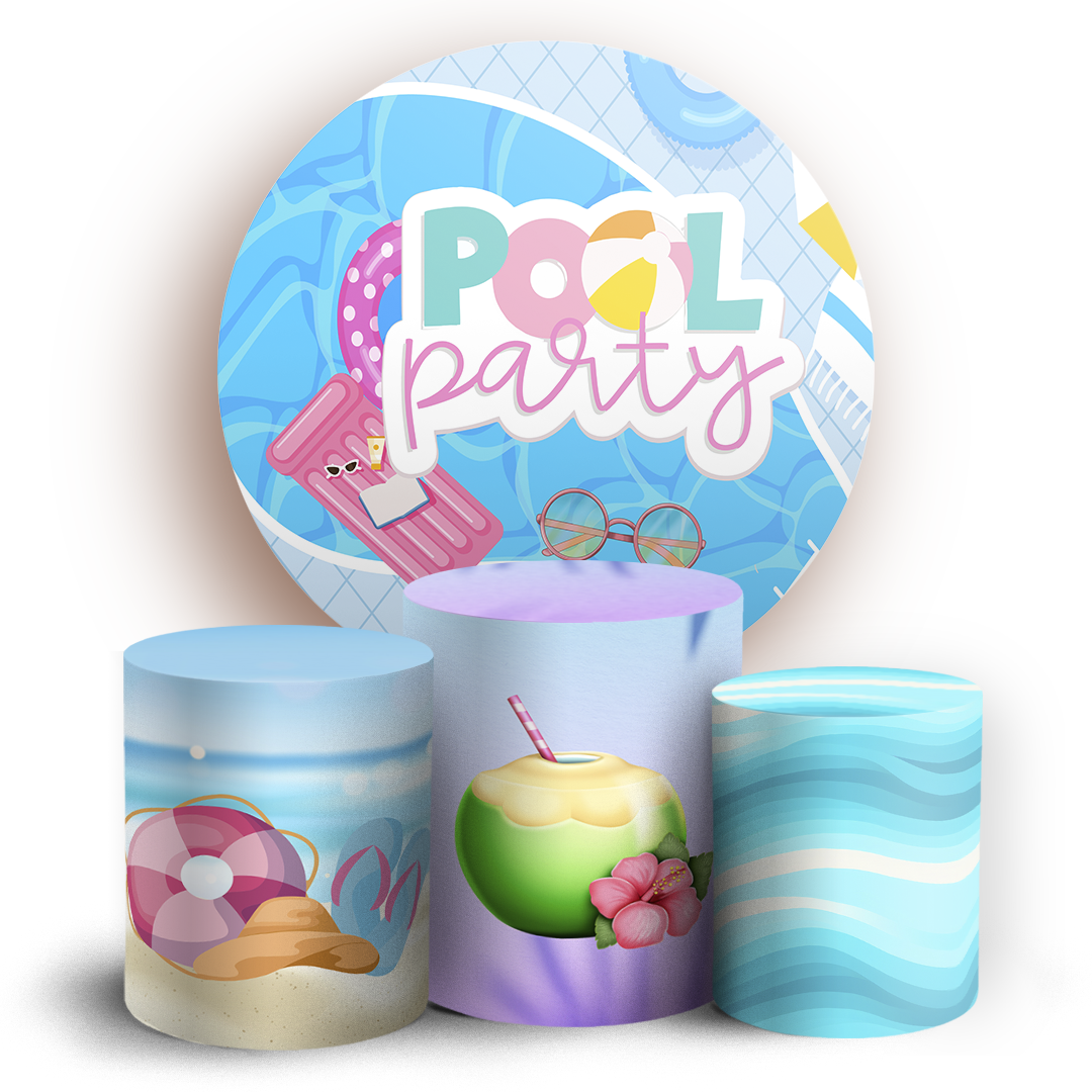 Capas Painel Redondo e Trio Cilindro Sublimado - Pool Party