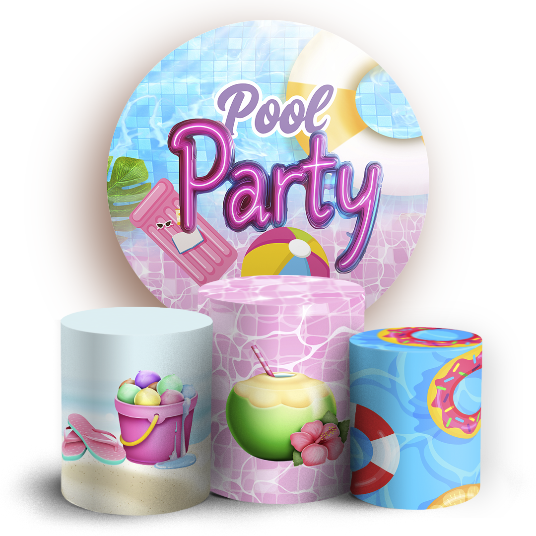 Capas Painel Redondo e Trio Cilindro Sublimado - Pool Party
