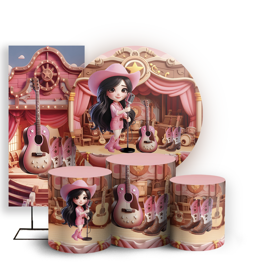 Capas Painel Redondo Trio Cilindro e Faixa Lateral Sublimado - Ana-Castela-Boiadeira