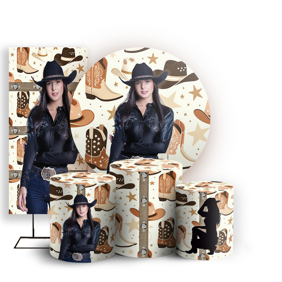 Capas Painel Redondo Trio Cilindro e Faixa Lateral Sublimado - Ana-Castela-Boiadeira