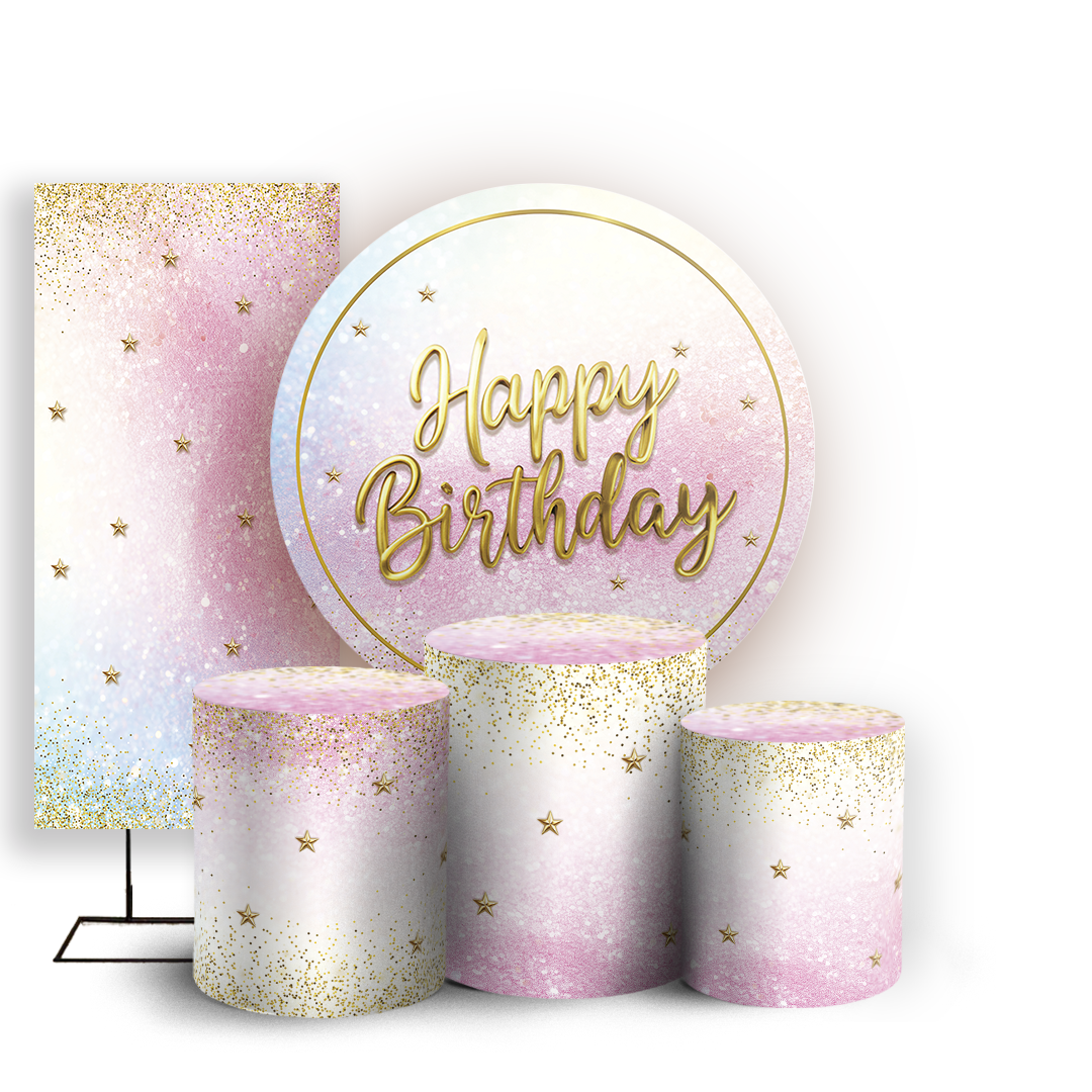 Capas Painel Redondo Trio Cilindro e Faixa Lateral Sublimado - Aniversário