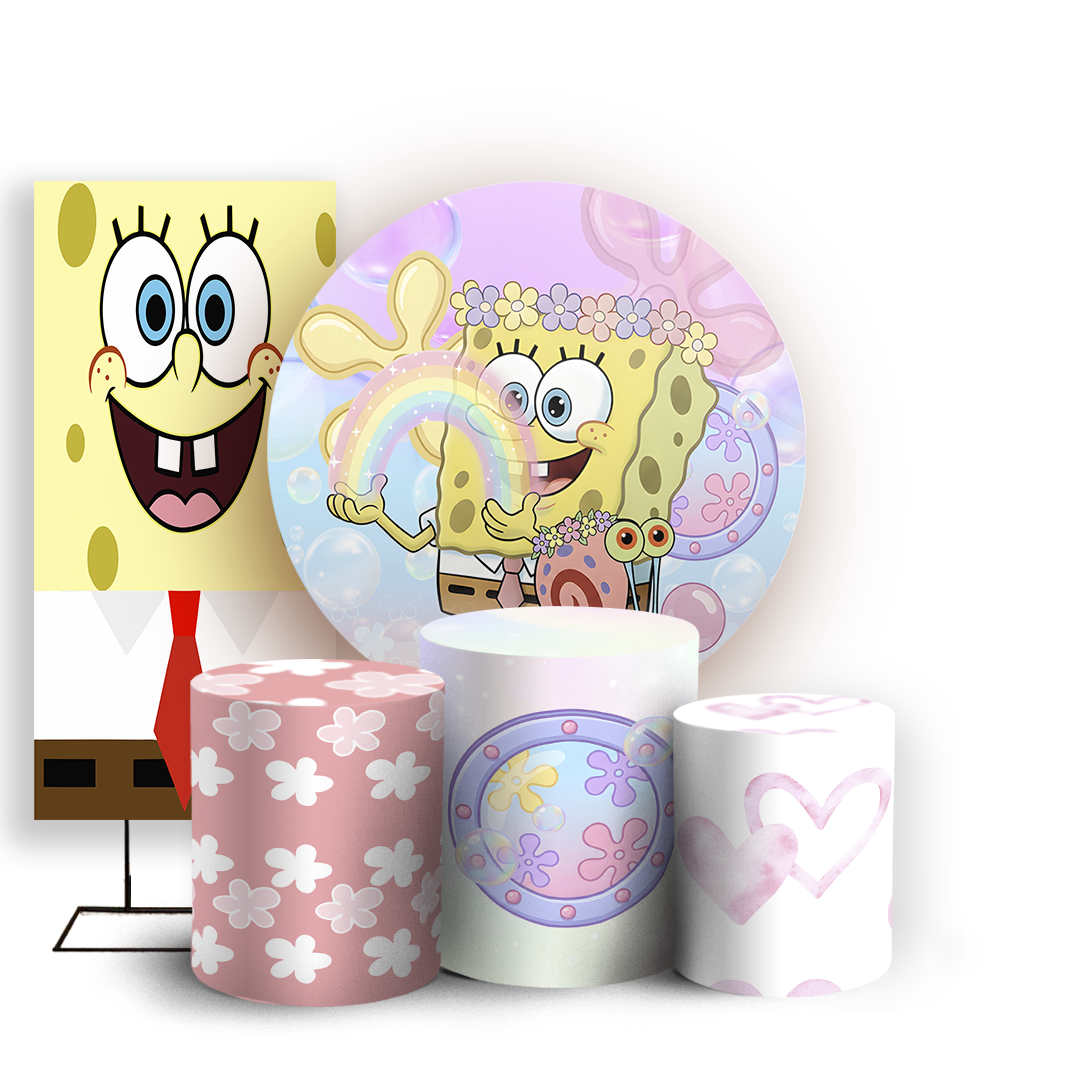 Capas Painel Redondo Trio Cilindro e Faixa Lateral Sublimado - Bob Esponja