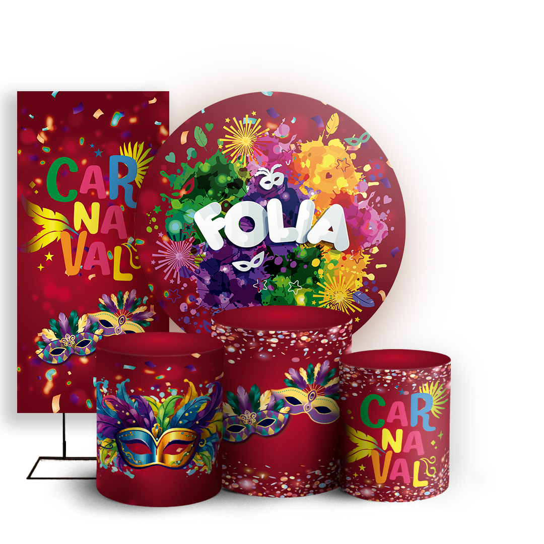 Capas Painel Redondo Trio Cilindro e Faixa Lateral Sublimado - Carnaval