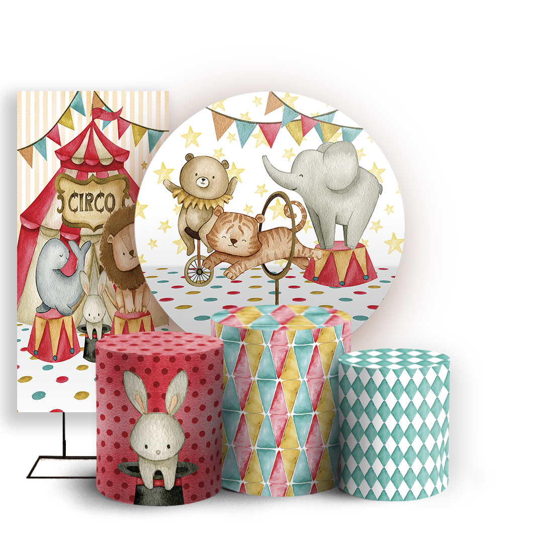 Capas Painel Redondo Trio Cilindro e Faixa Lateral Sublimado - Circo