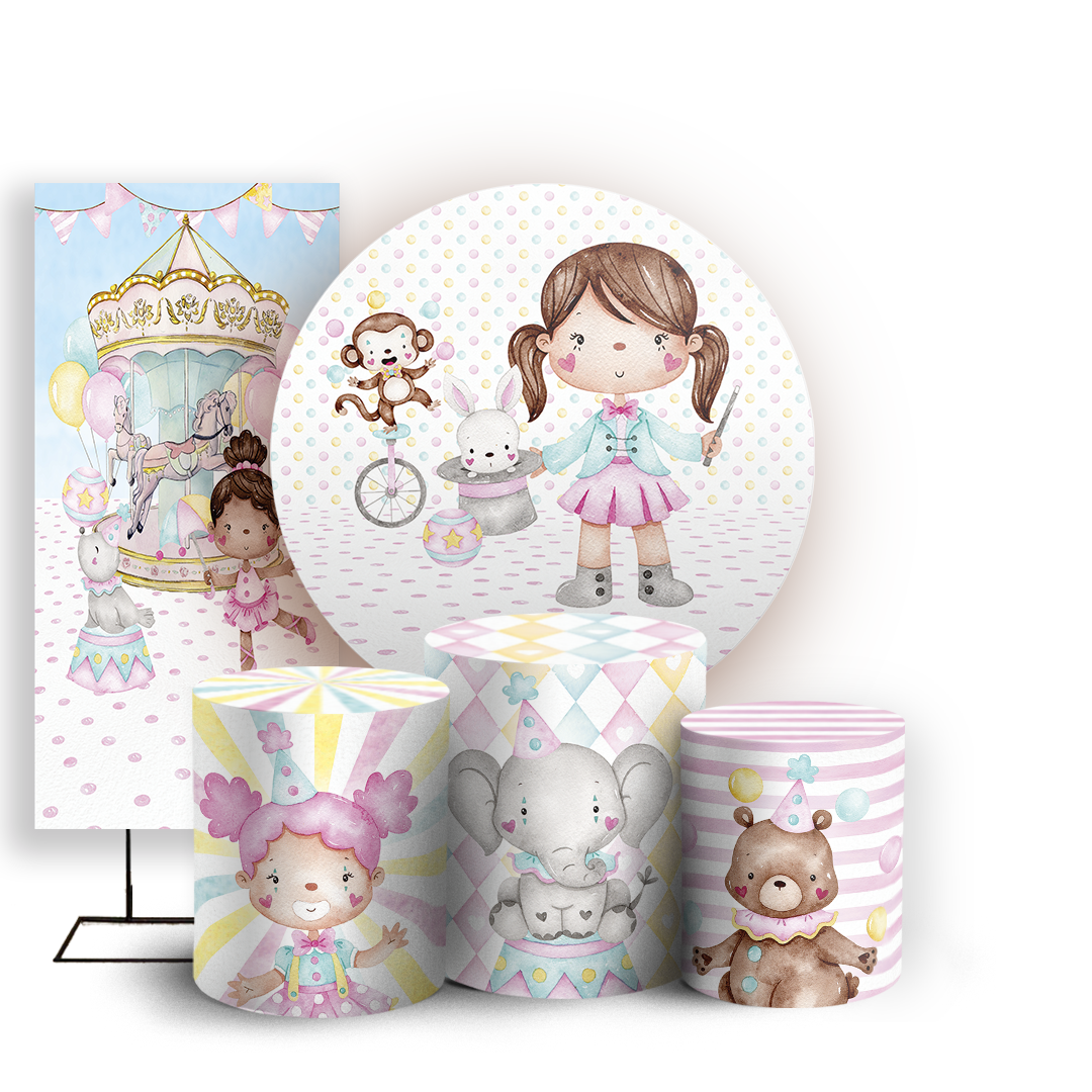 Capas Painel Redondo Trio Cilindro e Faixa Lateral Sublimado - Circo