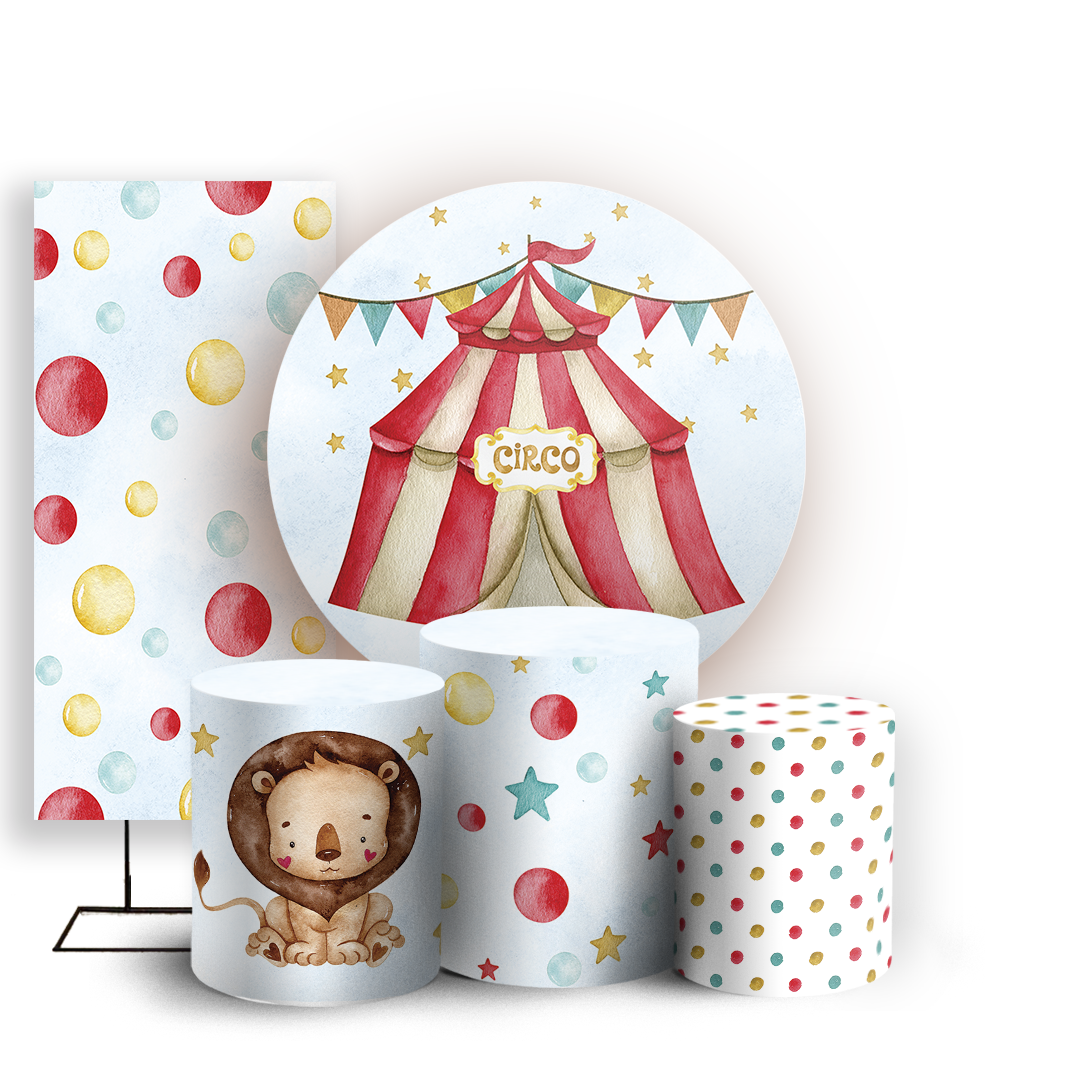 Capas Painel Redondo Trio Cilindro e Faixa Lateral Sublimado - Circo