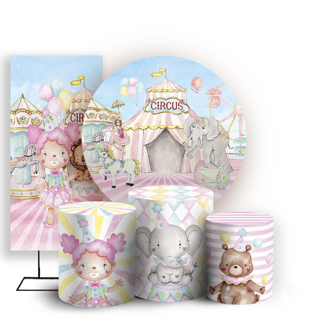 Capas Painel Redondo Trio Cilindro e Faixa Lateral Sublimado - Circo