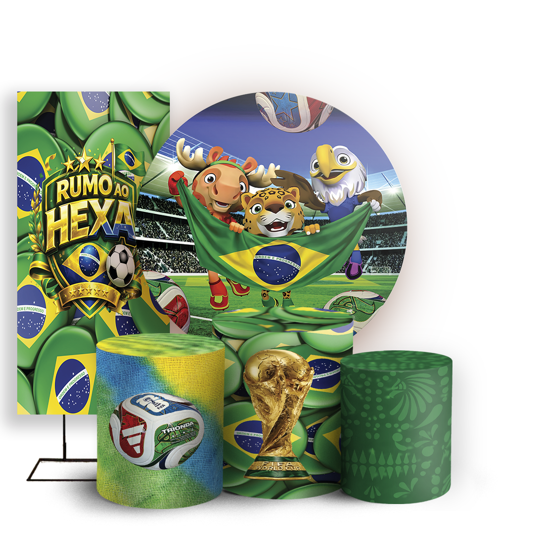 Capas Painel Redondo Trio Cilindro e Faixa Lateral Sublimado - Copa Do Mundo