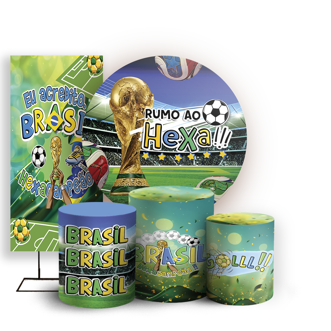 Capas Painel Redondo Trio Cilindro e Faixa Lateral Sublimado - Copa Do Mundo