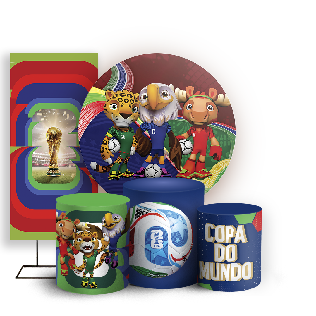 Capas Painel Redondo Trio Cilindro e Faixa Lateral Sublimado - Copa Do Mundo