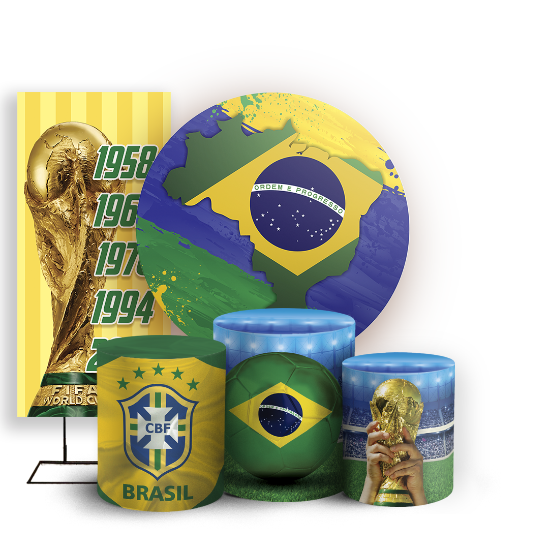 Capas Painel Redondo Trio Cilindro e Faixa Lateral Sublimado - Copa Do Mundo Brasil