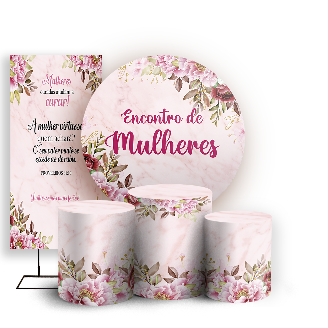 Capas Painel Redondo Trio Cilindro e Faixa Lateral Sublimado - Dia Da Mulher