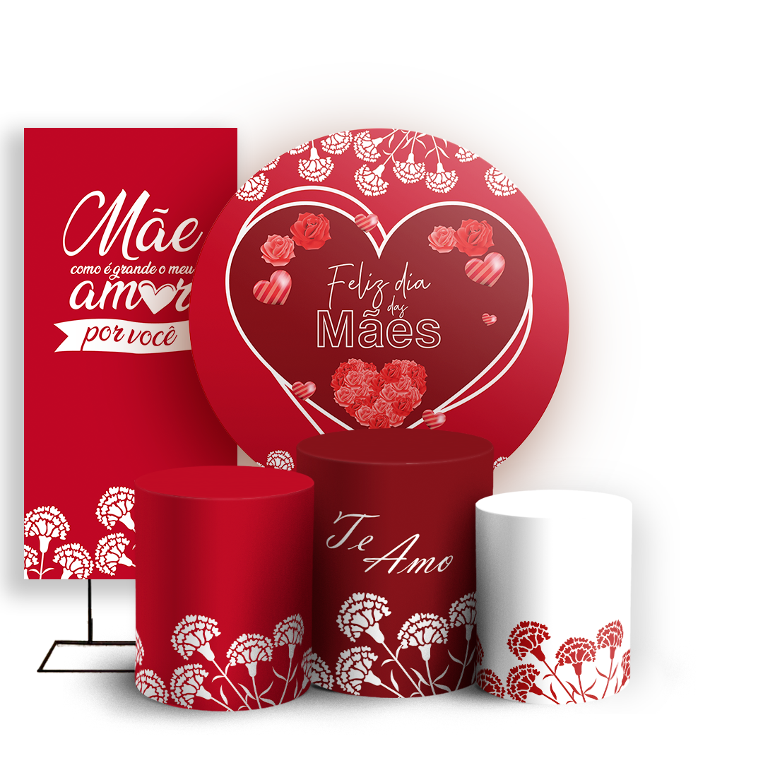 Capas Painel Redondo Trio Cilindro e Faixa Lateral Sublimado - Dia das Mães