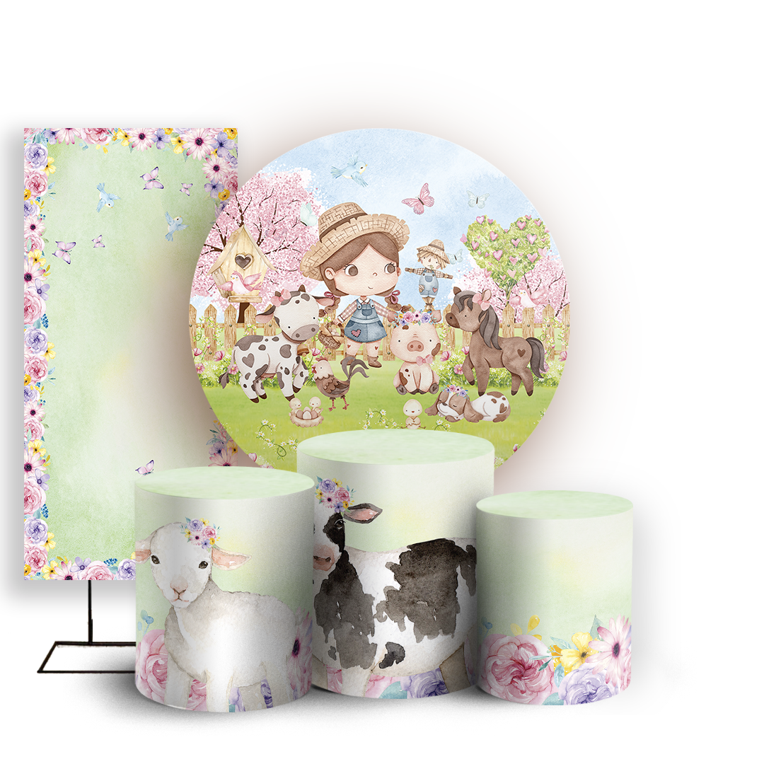 Capas Painel Redondo Trio Cilindro e Faixa Lateral Sublimado - Fazendinha