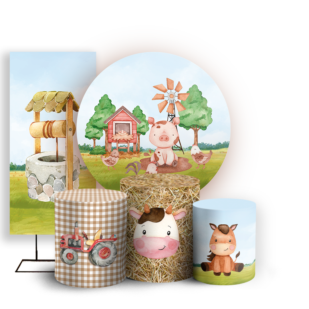 Capas Painel Redondo Trio Cilindro e Faixa Lateral Sublimado - Fazendinha