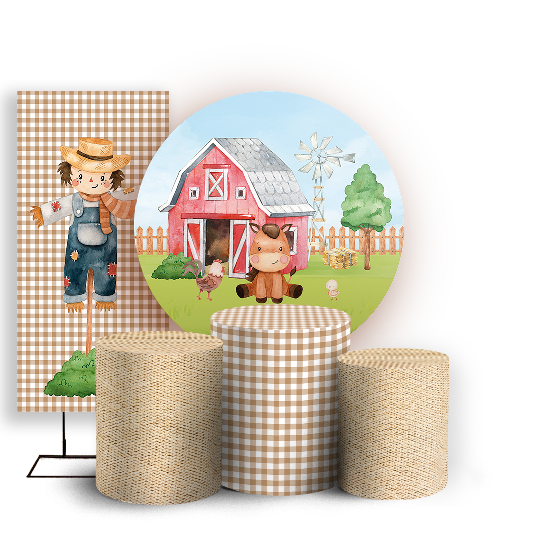 Capas Painel Redondo Trio Cilindro e Faixa Lateral Sublimado - Fazendinha
