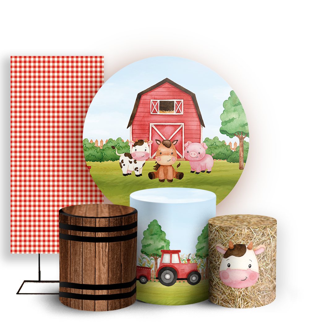 Capas Painel Redondo Trio Cilindro e Faixa Lateral Sublimado - Fazendinha