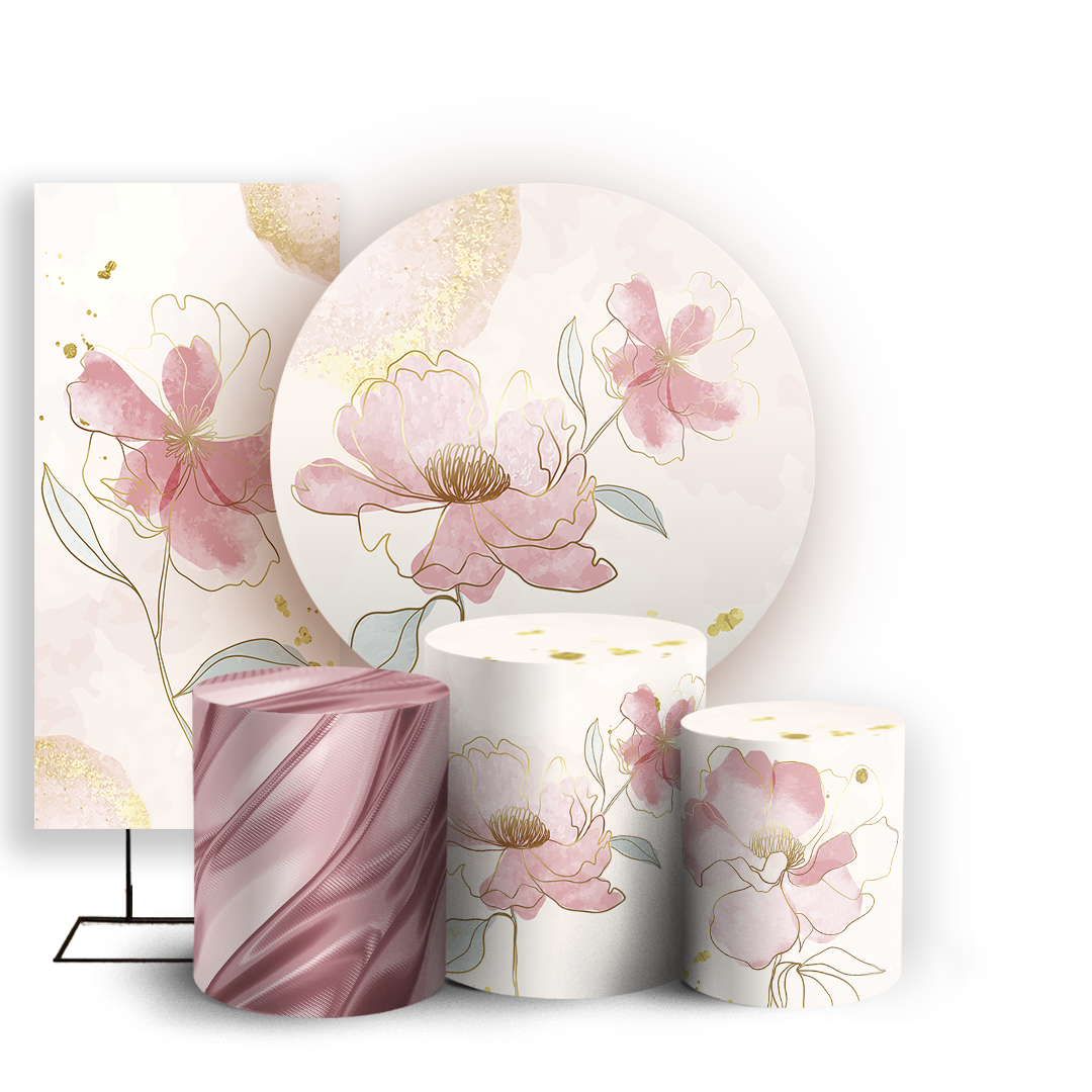 Capas Painel Redondo Trio Cilindro e Faixa Lateral Sublimado - Floral