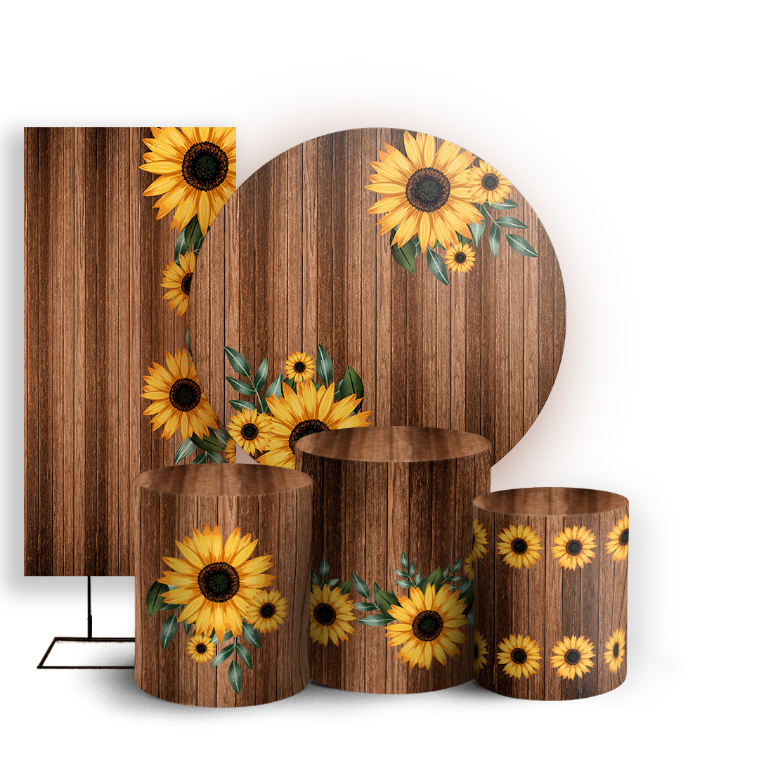 Capas Painel Redondo Trio Cilindro e Faixa Lateral Sublimado - Girassol Floral