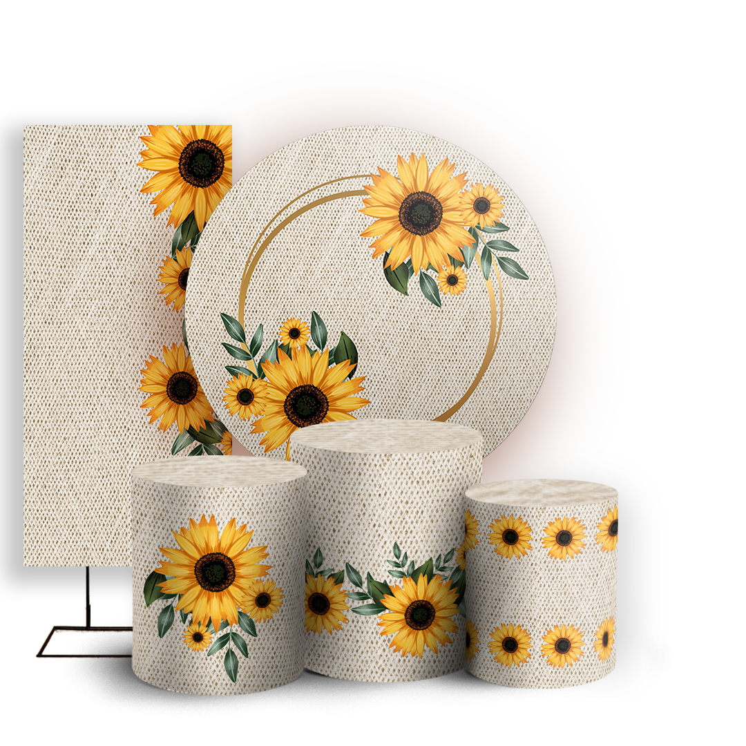 Capas Painel Redondo Trio Cilindro e Faixa Lateral Sublimado - Girassol Floral