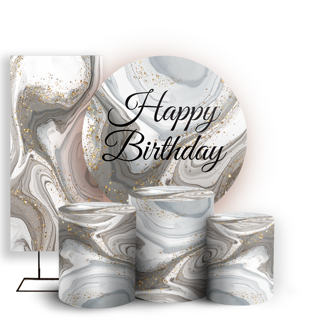 Capas Painel Redondo Trio Cilindro e Faixa Lateral Sublimado - Happy Birthday