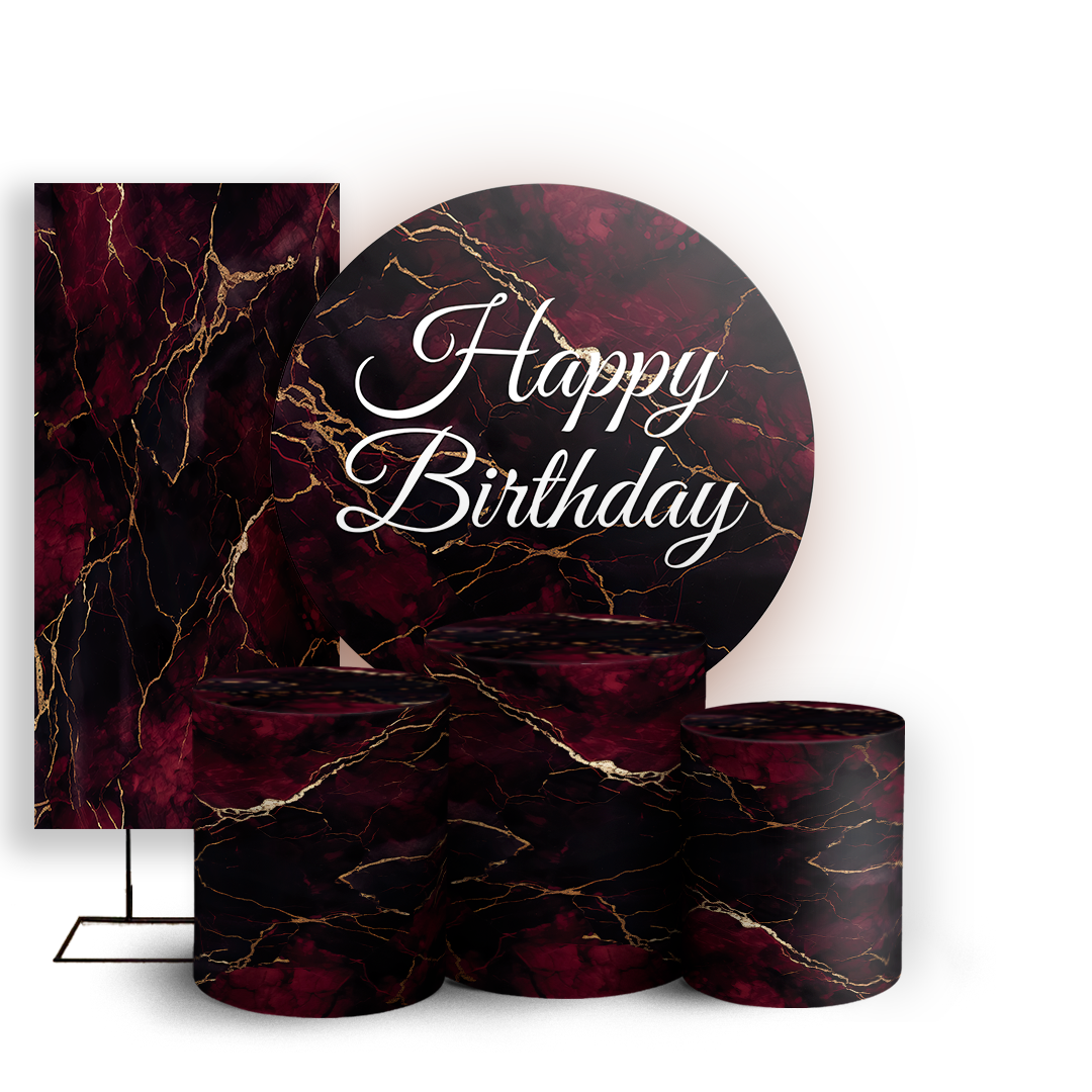 Capas Painel Redondo Trio Cilindro e Faixa Lateral Sublimado - Happy Birthday