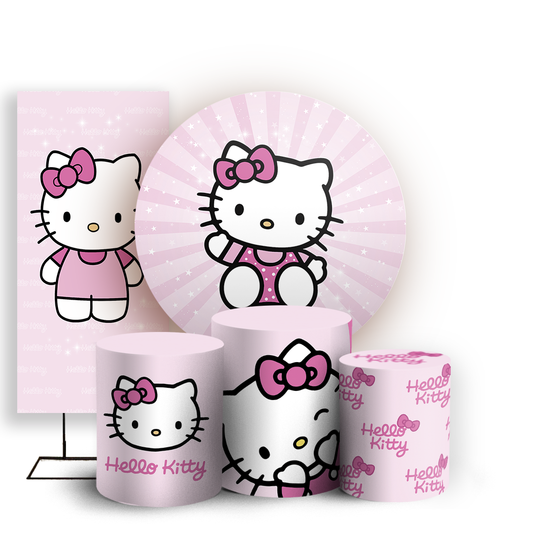 Capas Painel Redondo Trio Cilindro e Faixa Lateral Sublimado - Hello Kitty