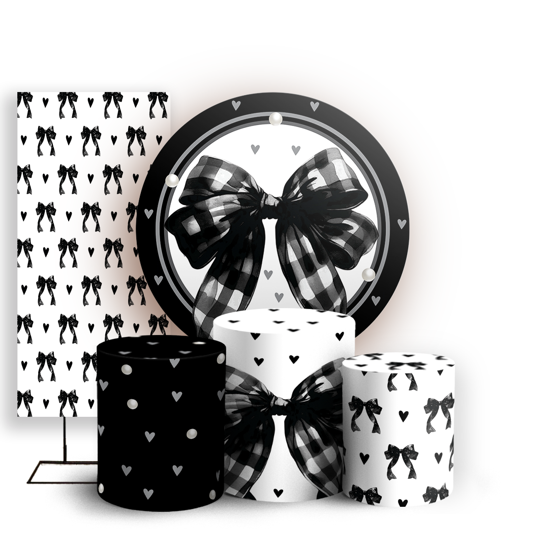 Capas Painel Redondo Trio Cilindro e Faixa Lateral Sublimado - Laços-Preto