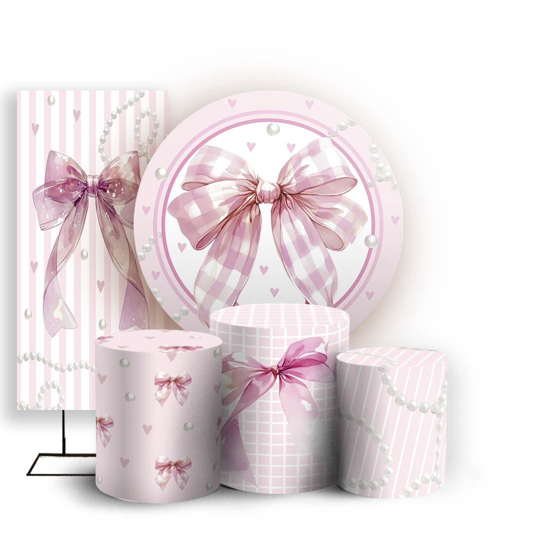 Capas Painel Redondo Trio Cilindro e Faixa Lateral Sublimado - Laços-Rosa