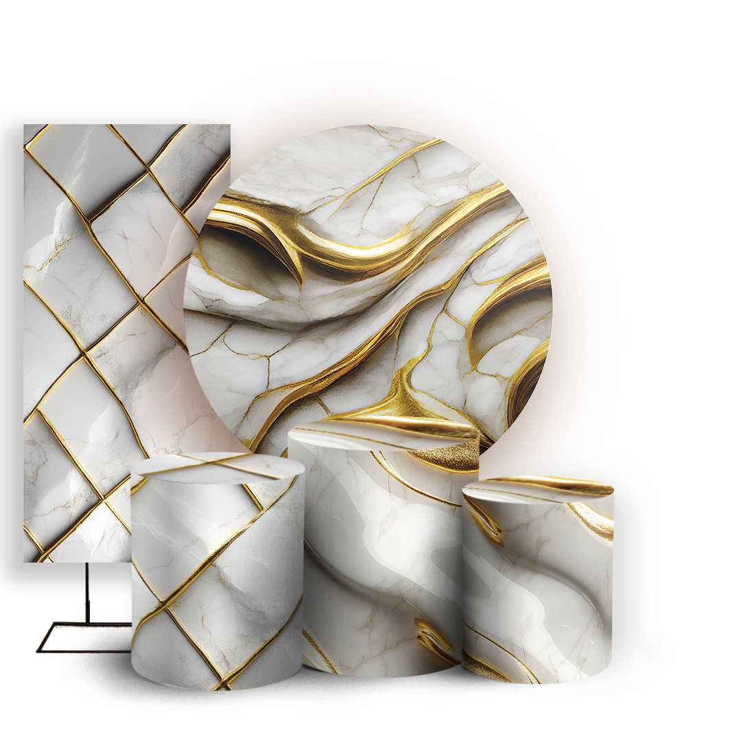 Capas Painel Redondo Trio Cilindro e Faixa Lateral Sublimado - Marmore-Dourado