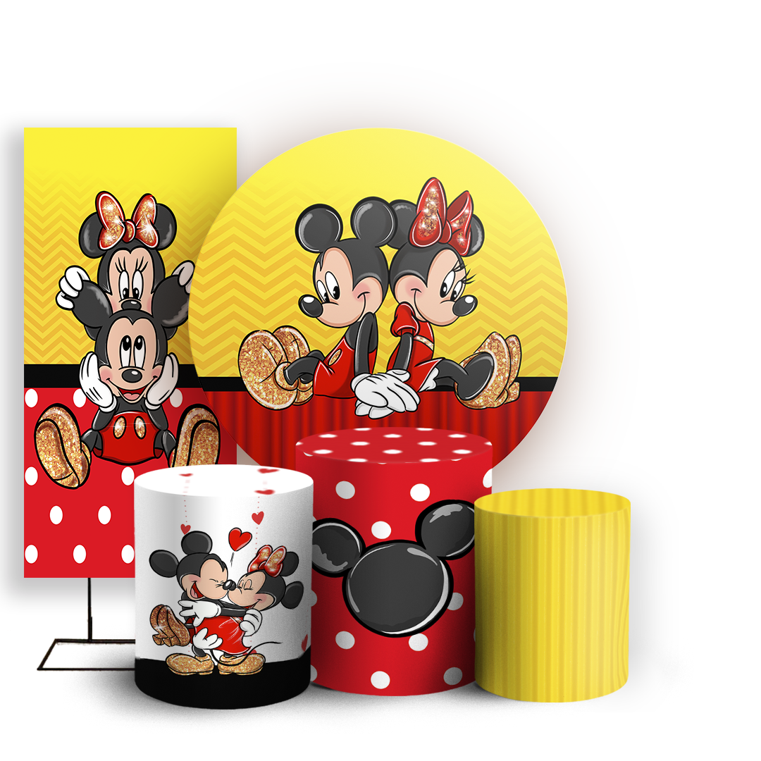 Capas Painel Redondo Trio Cilindro e Faixa Lateral Sublimado - Mickey-E-Minnie