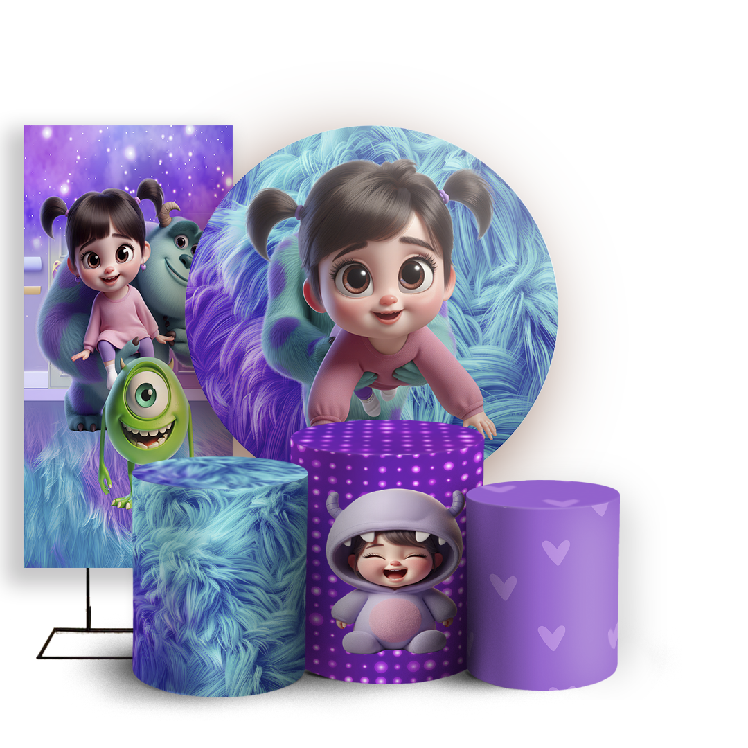 Capas Painel Redondo Trio Cilindro e Faixa Lateral Sublimado - Monstros Sa