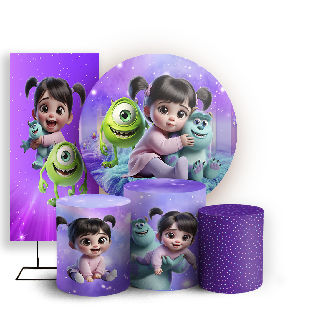 Capas Painel Redondo Trio Cilindro e Faixa Lateral Sublimado - Monstros Sa