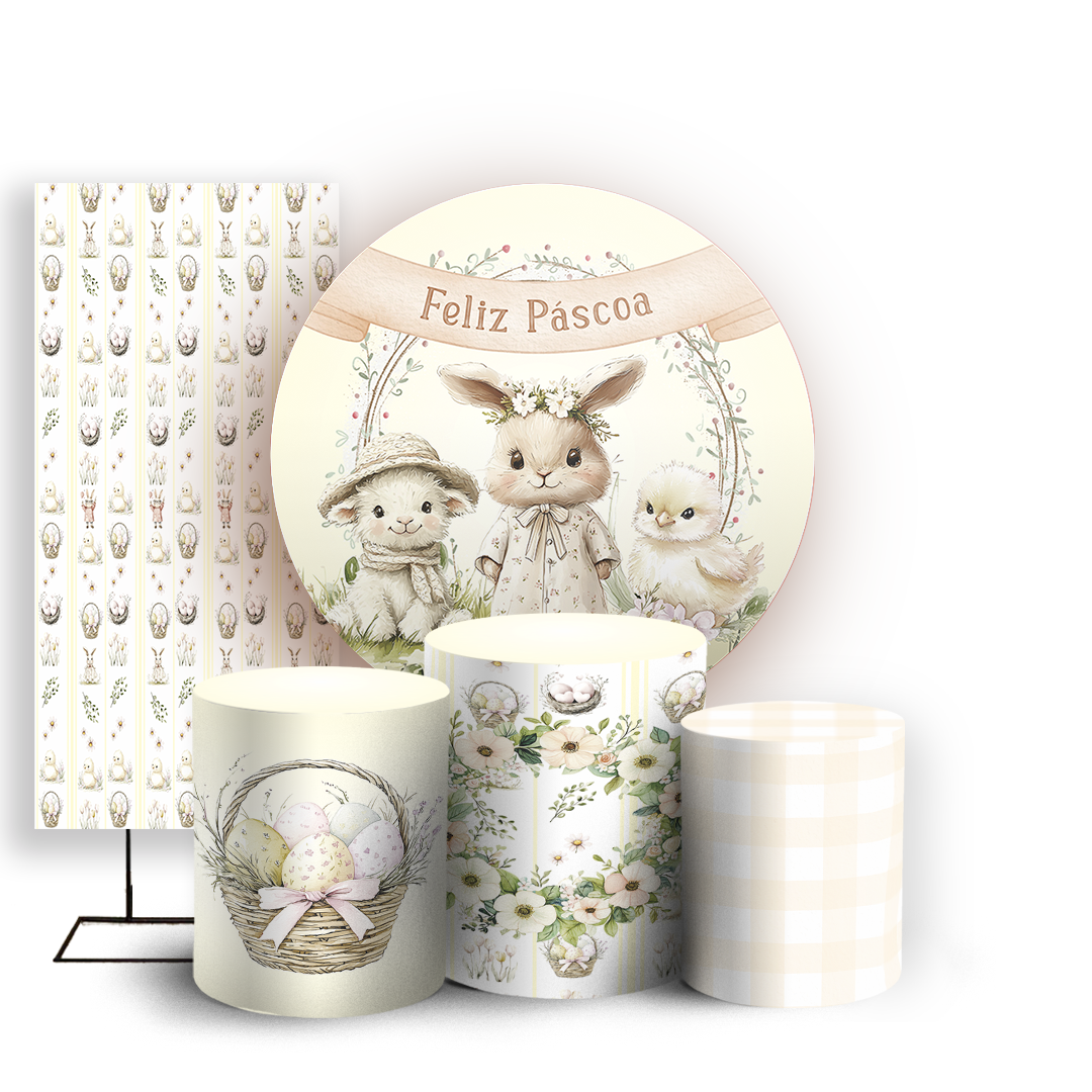Capas Painel Redondo Trio Cilindro e Faixa Lateral Sublimado - Pascoa