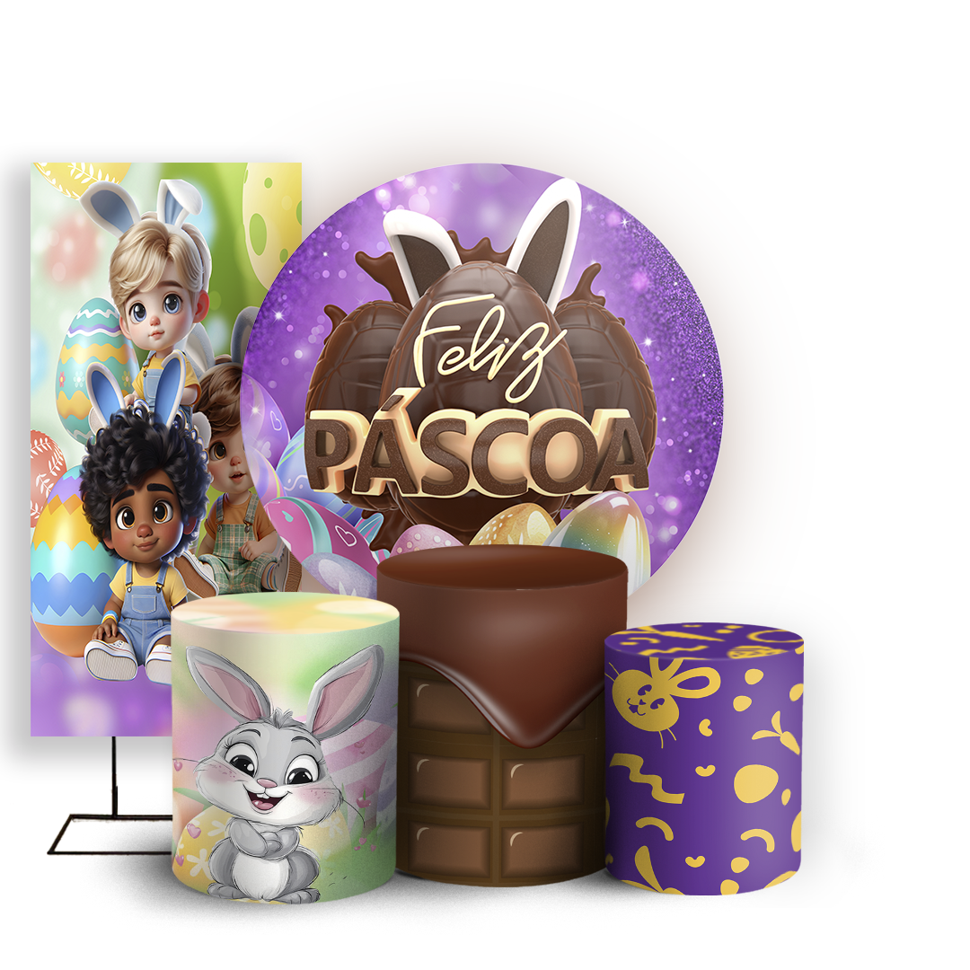 Capas Painel Redondo Trio Cilindro e Faixa Lateral Sublimado - Pascoa